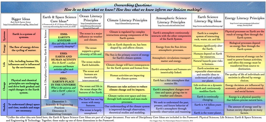 This bulleted list includes links to each initiative and the corresponding sets of principles. Scroll down the page to see a mapping of these principles to Earth Science Big Ideas developed for use in our projects.