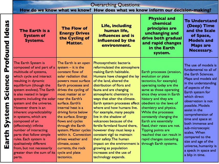 A series of National Science Foundation initiatives is defining essential principles or big ideas in Earth system science disciplines. It is intended by some that these initiatives will coalesce into an overarching set of principles for all of Earth system science.